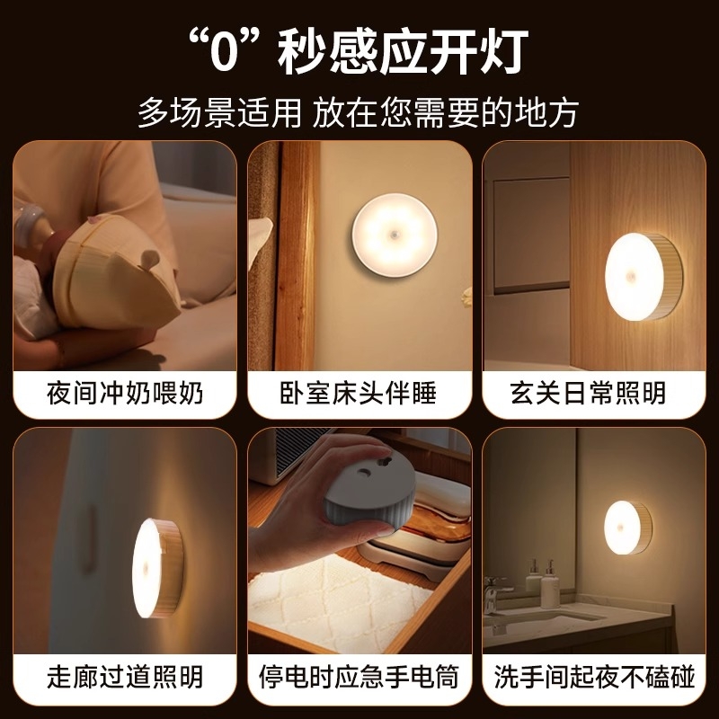 自动人体感应灯入户门起夜宿舍卧室睡眠侧发光过道充电小夜灯地脚