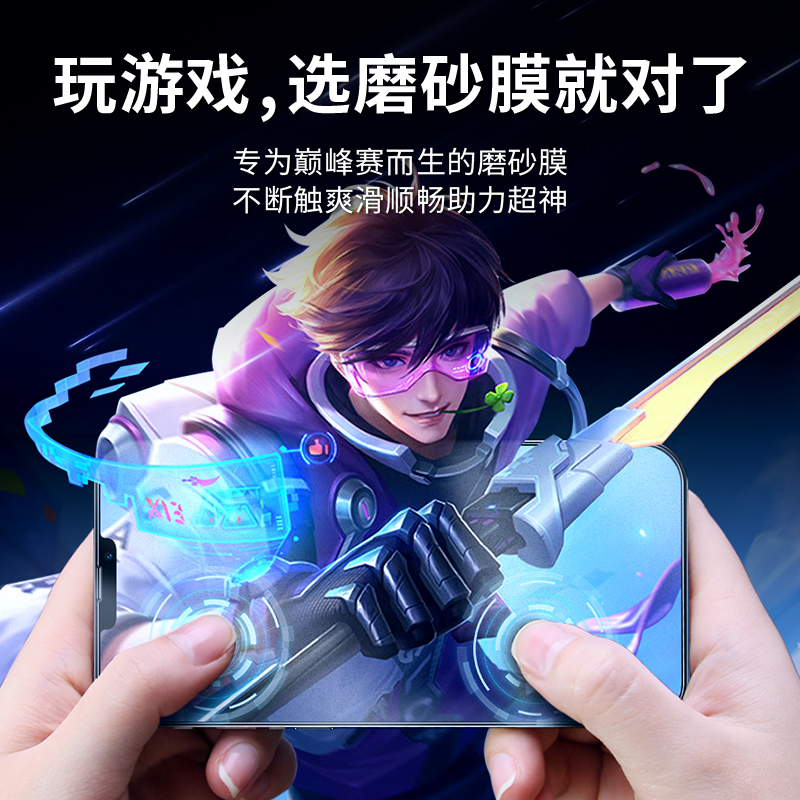 金佳适用于苹果13钢化膜磨砂电竞iPhone13手机膜13proMax防指纹手汗全屏防爆13Pro抗蓝光护眼13mini全包贴膜