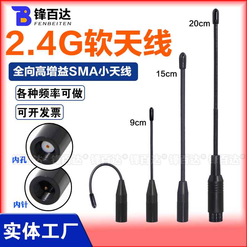 WIFI 2.4G高增益外置软天线2400-2483MHz 2400-2500M路由器无线网卡蓝牙模块软质鞭状小天线可弯曲SMA头