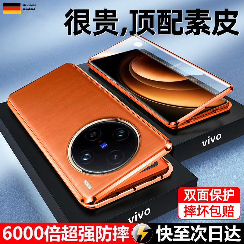 适用vivox100手机壳vivo新款x100pro素皮镜头全包vivix防摔vovox超薄vⅰvox叉viⅴo真皮Pr0高级感viv0vo男女
