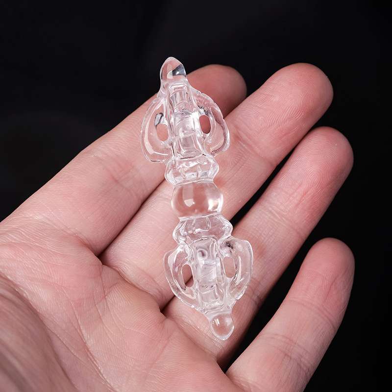 天然白水晶金刚杵雕刻把玩件 水晶降魔杵法器工艺品家居装饰摆件