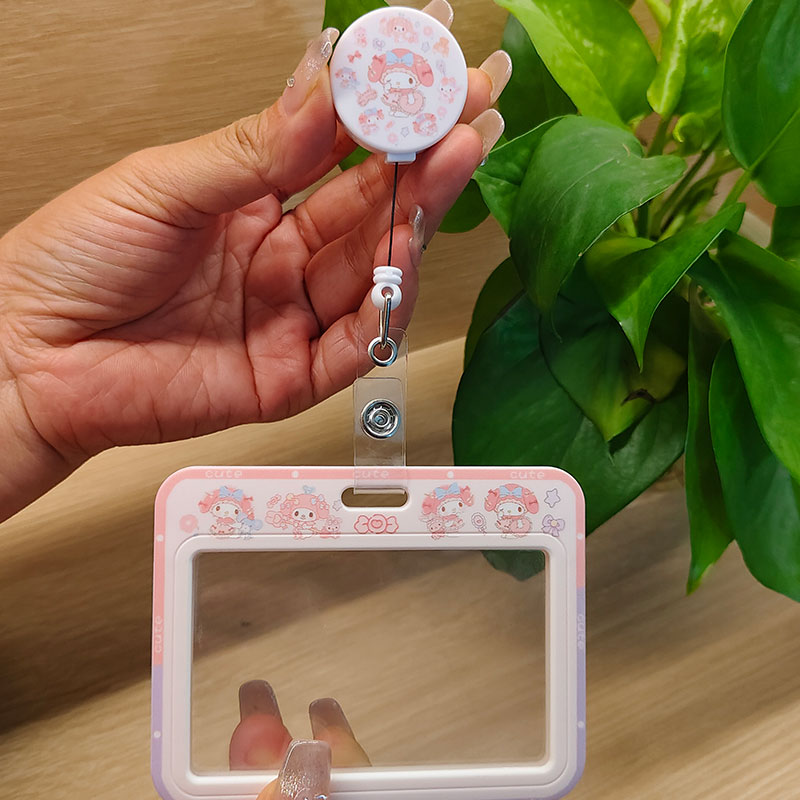 可爱卡通双面透明公交门禁身份证饭卡卡套校园卡伸缩工作证件胸牌