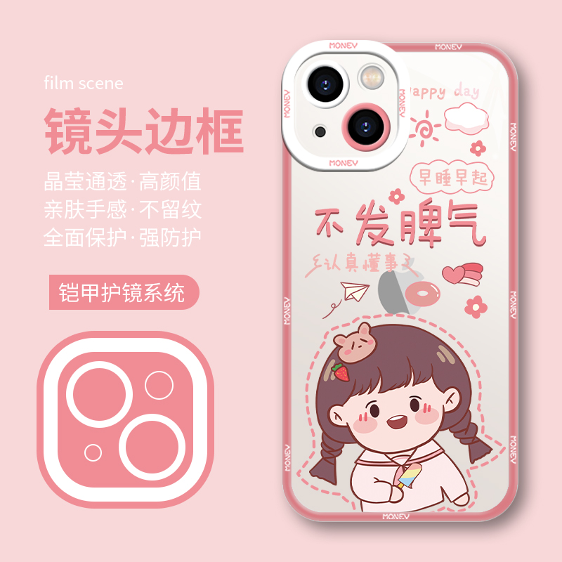 适用iphone13/16情侣手机壳15苹果12苹果14pro不发脾气8plus努力赚钱xsmax文字xr天使眼新款11promax男女透明