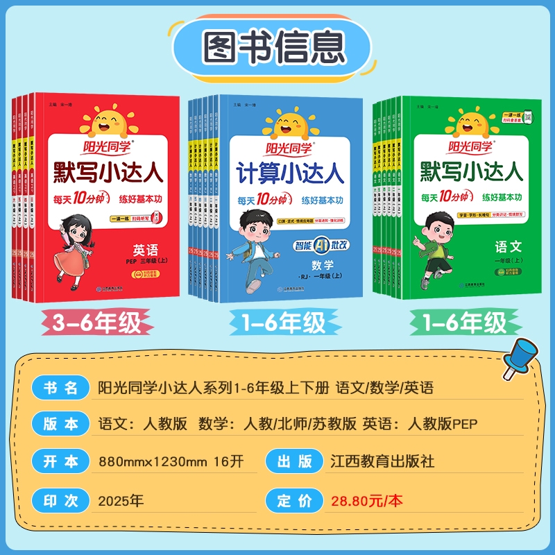 计算小达人2025秋版阳光同学一二三年级四五六年级上册小学数学专项训练练习册口算题卡应用题天天练默写总复习每日科学同步听写