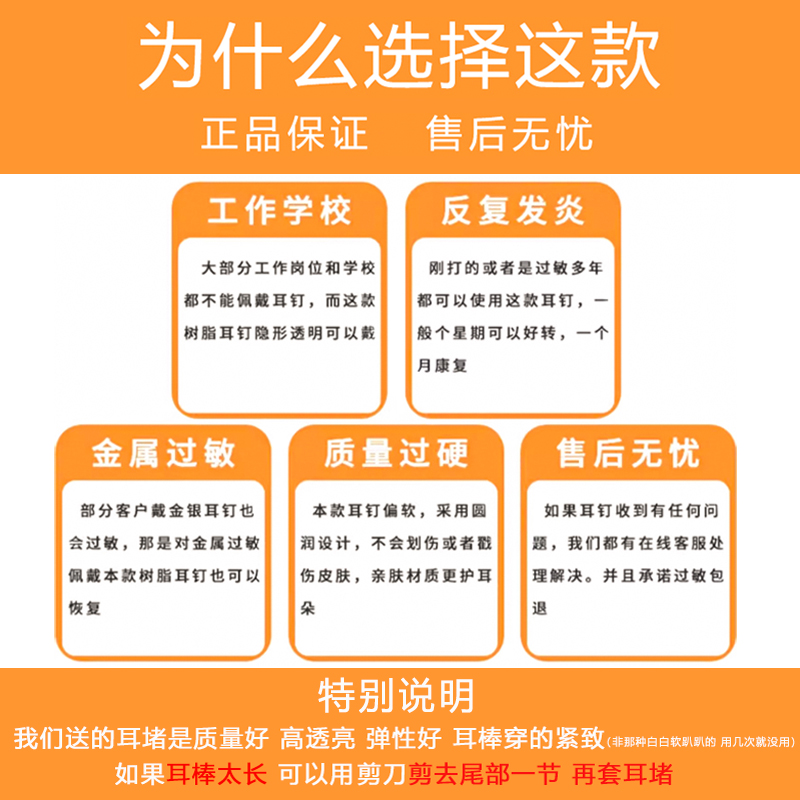 塑料小耳钉养耳洞防过敏透明棒防堵塞耳针甜美隐形迷你耳棒胶棒