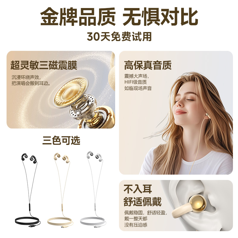 联想异能者有线耳机夹耳式Typec久戴不疼扁头YE03适用17/1615