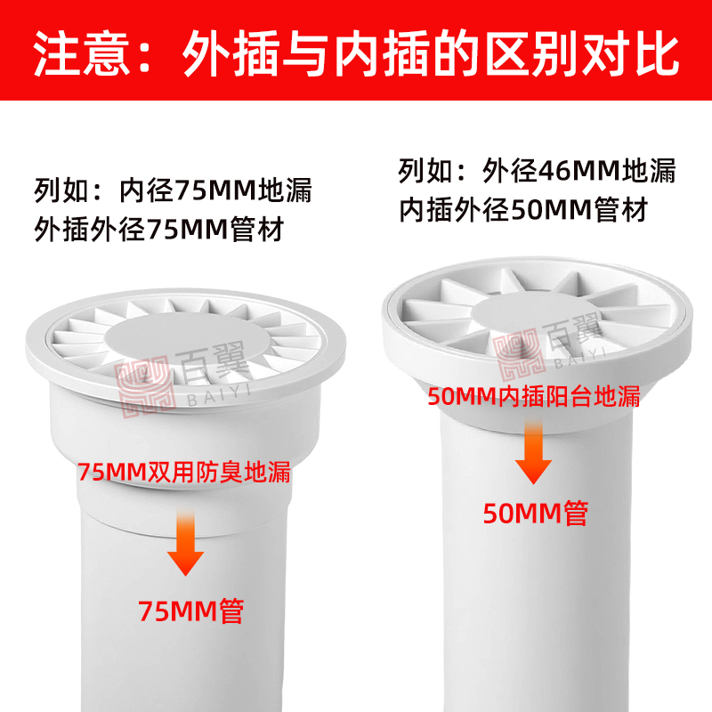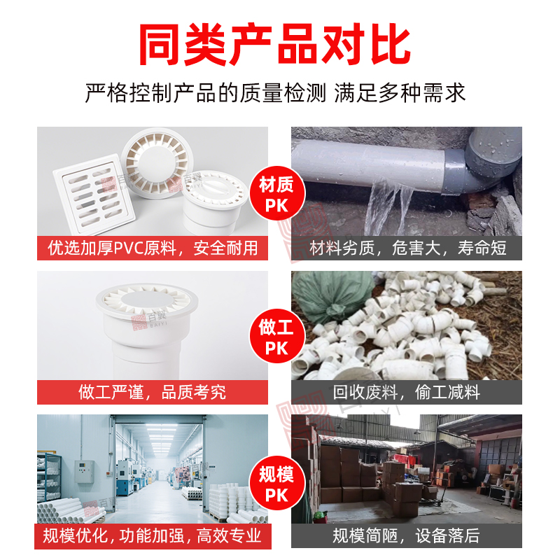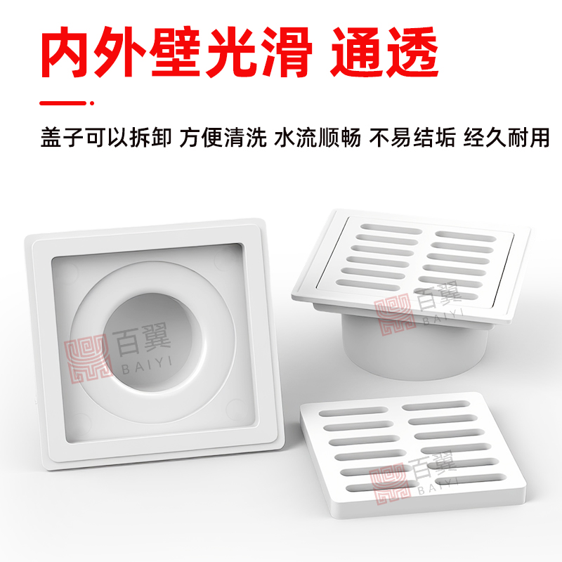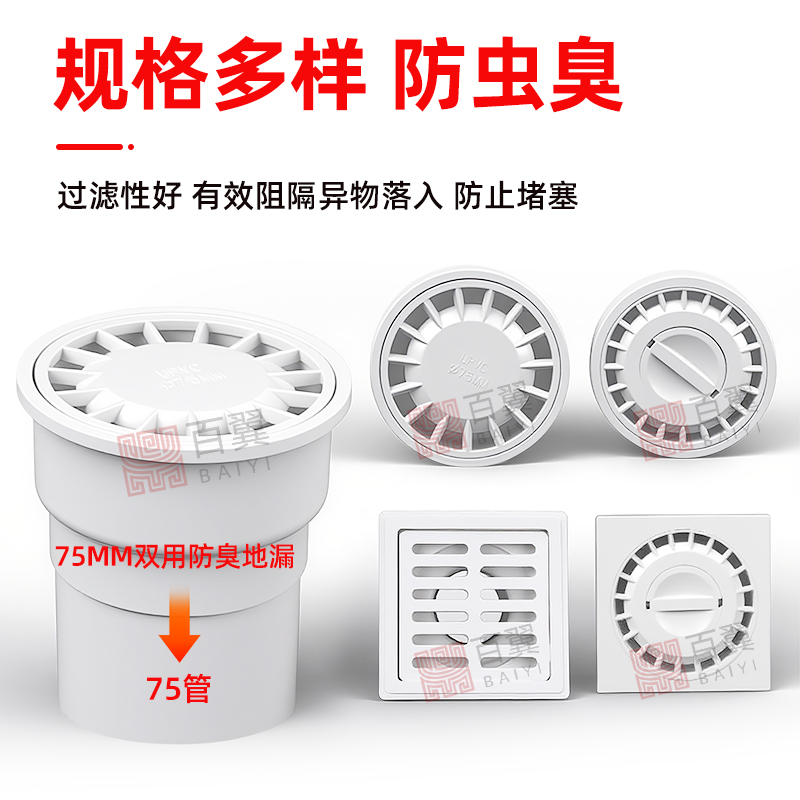 PVC地漏盖下水卫生间台高封洗衣110下水管配件50圆形方型防臭地漏