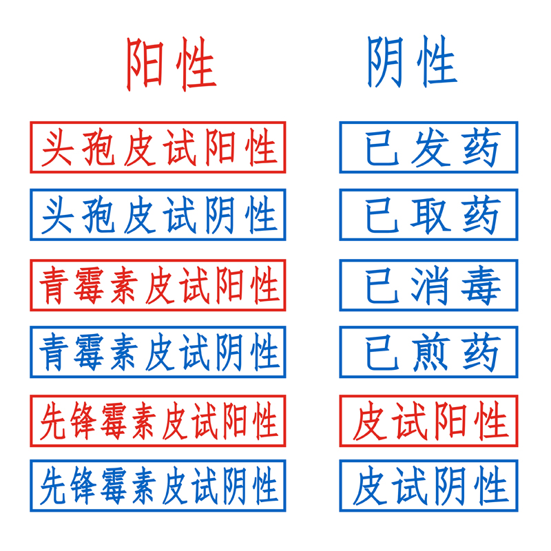 青霉素皮试阳性章 霉素皮试阴性印章 已发药已取药已消毒刻章 头孢医生红蓝色章子盖章检查结果抗原核酸护士
