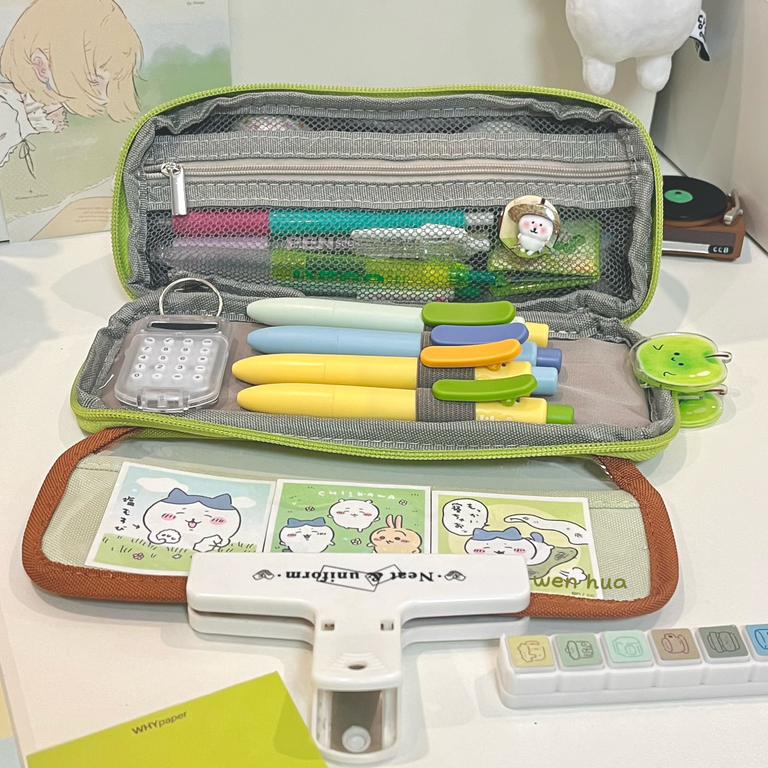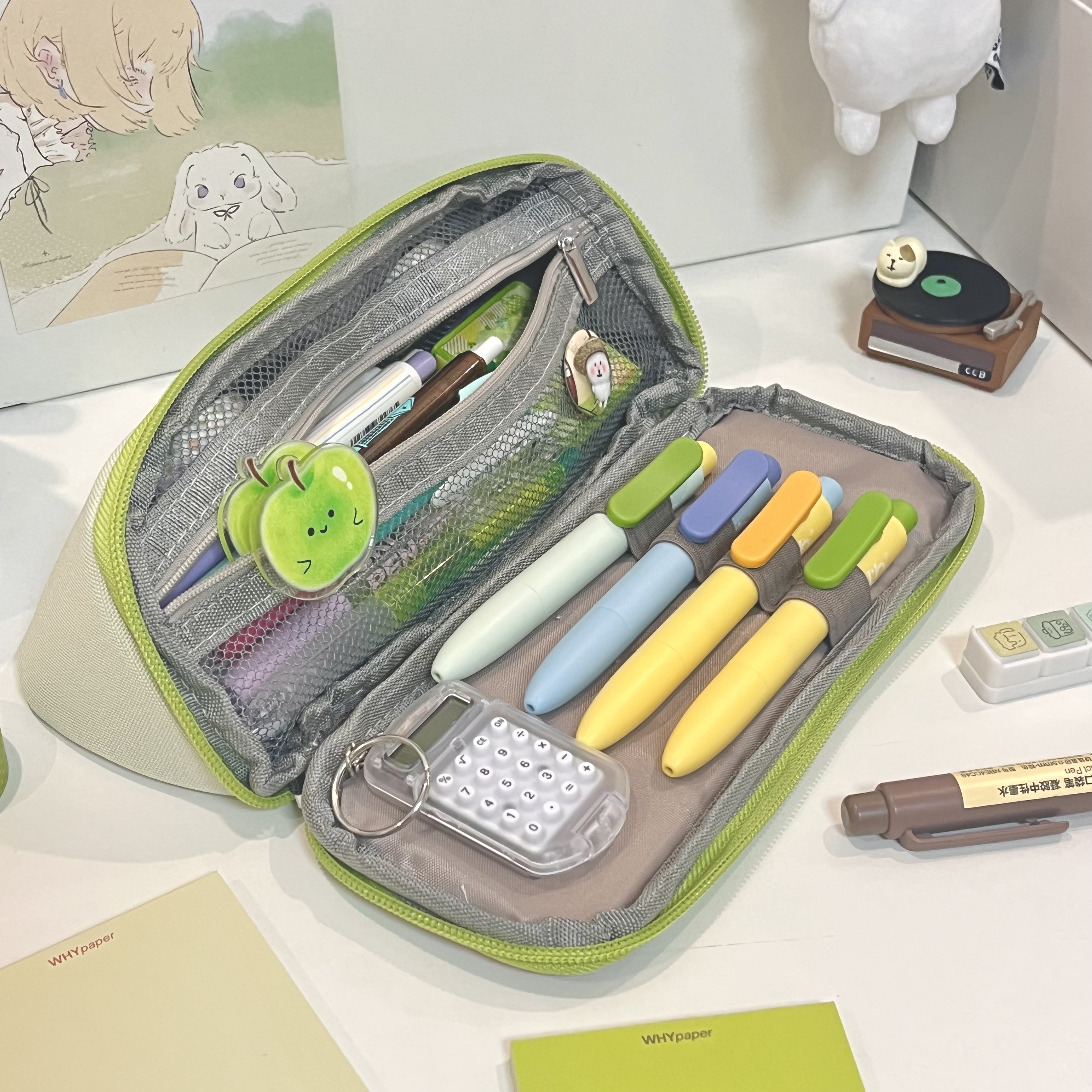 牛油果撞色拼接痛包笔袋学生小众ins风高颜值大容量多功能文具袋