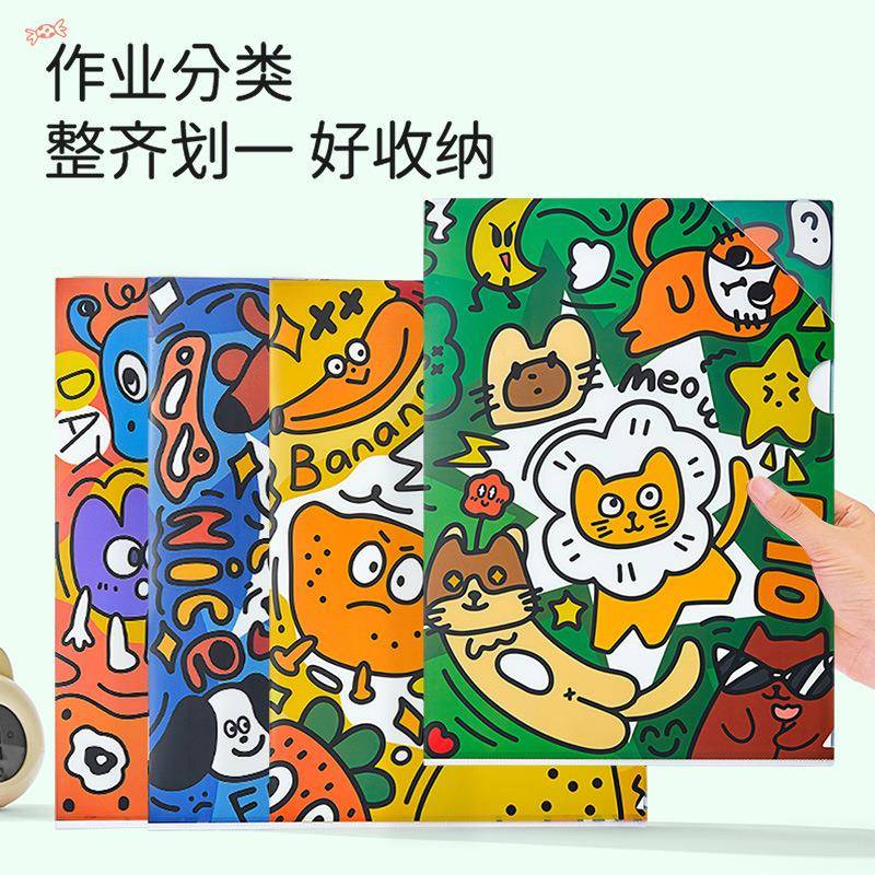 LOMI/豪代文创卡通L型文件夹PP单二页a4封套票据试卷分类档案收纳