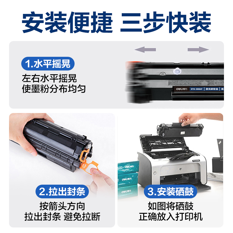 得力388a硒鼓适用惠普hp m1136 m126a m126nw打印机墨盒cc388a p1108p1106m128粉盒m1213nf 碳粉可加粉感光鼓