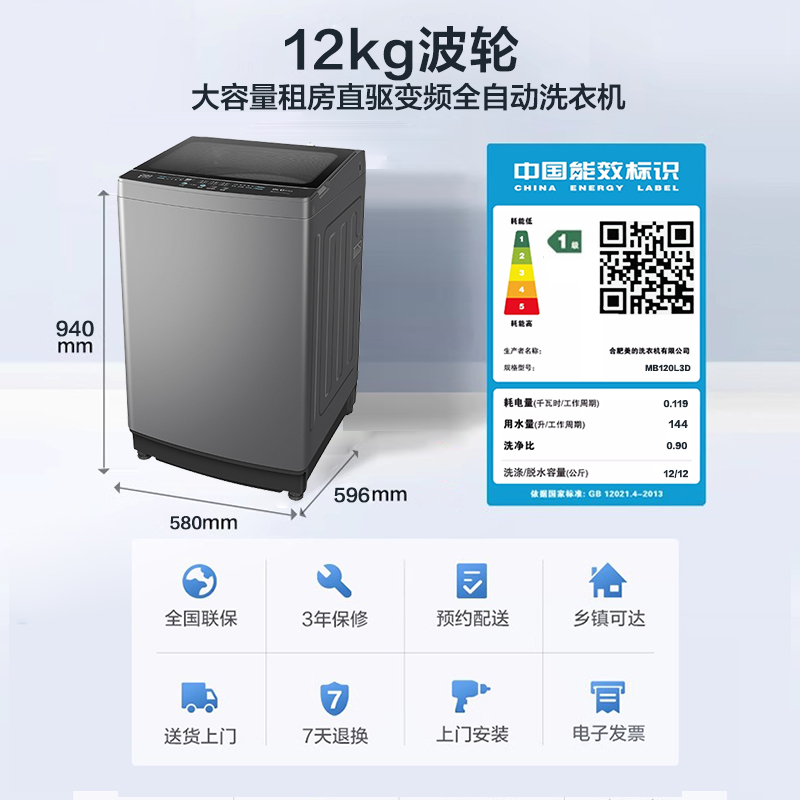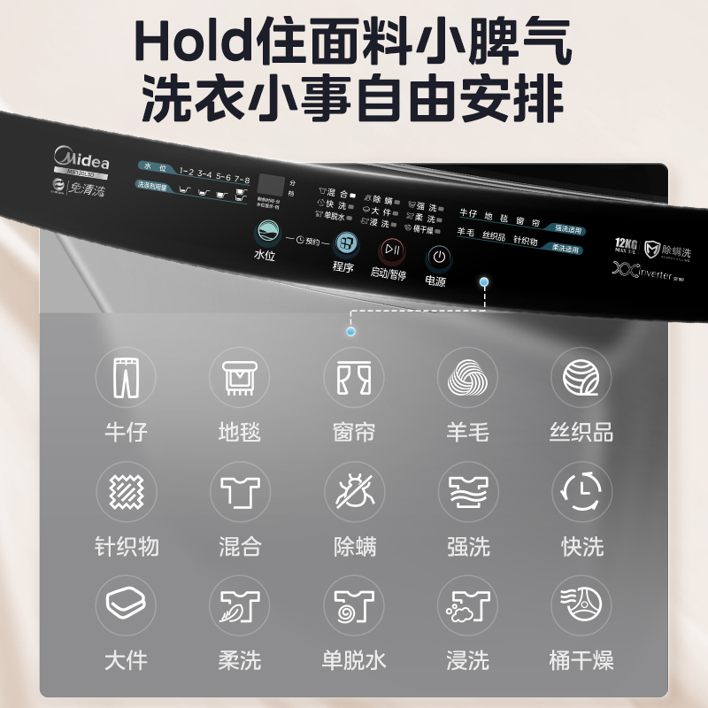 [以旧换新补贴]美的8/10/12kg洗衣机全自动家用直驱变频抗菌波轮