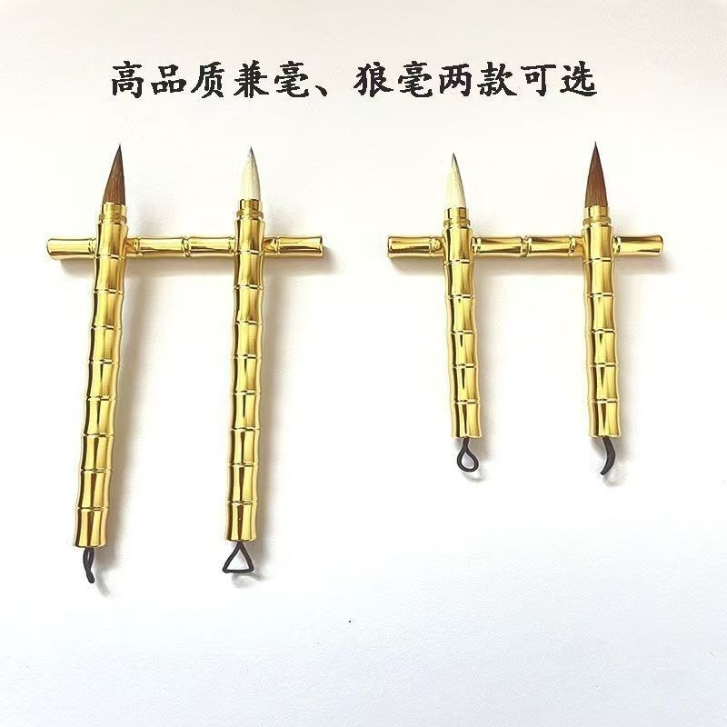 便捷式纯黄铜杆兼毫狼毫小楷毛笔初学者绘画书法欧楷抄经鸡距毛笔