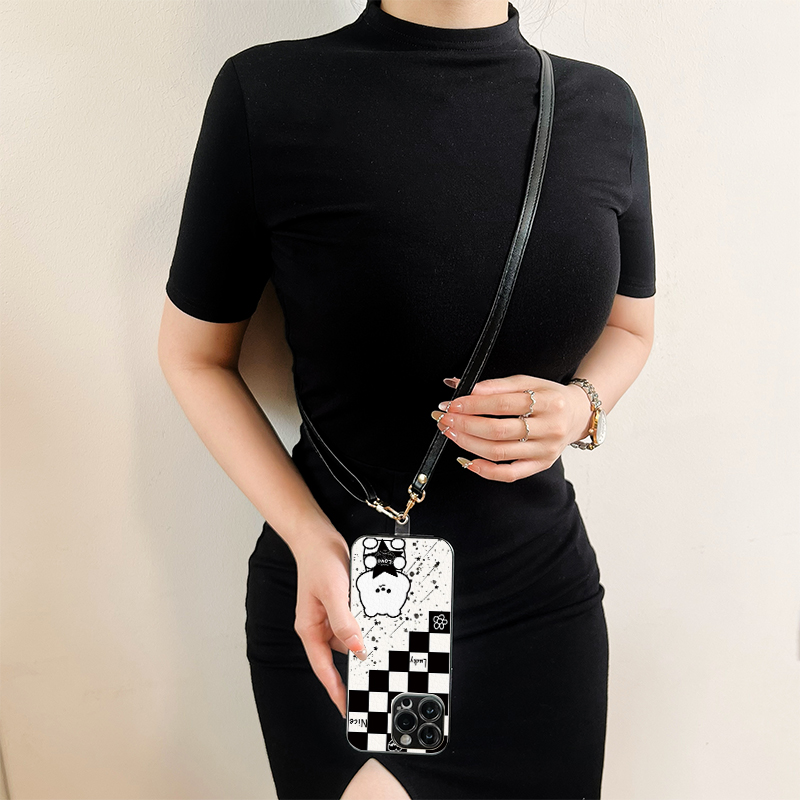 黑白小熊适用小米15手机壳红米note14斜挎civi4可调turbo4青春e至9尊8纪mix念1天x套pro玑2s奢0华3x手绳ultra