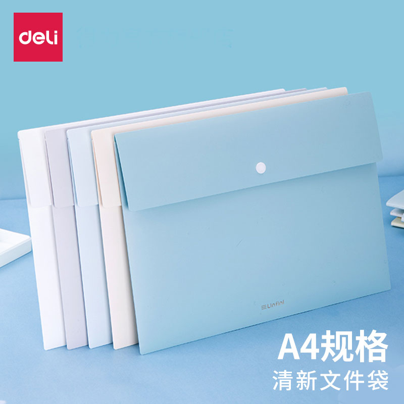 得力72416按扣文件套素雅小清新学生试卷资料册办公文件袋浅蓝灰