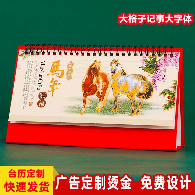 2026马年台历大字体简约桌面月历摆件可爱记事计划本定制烫金日历