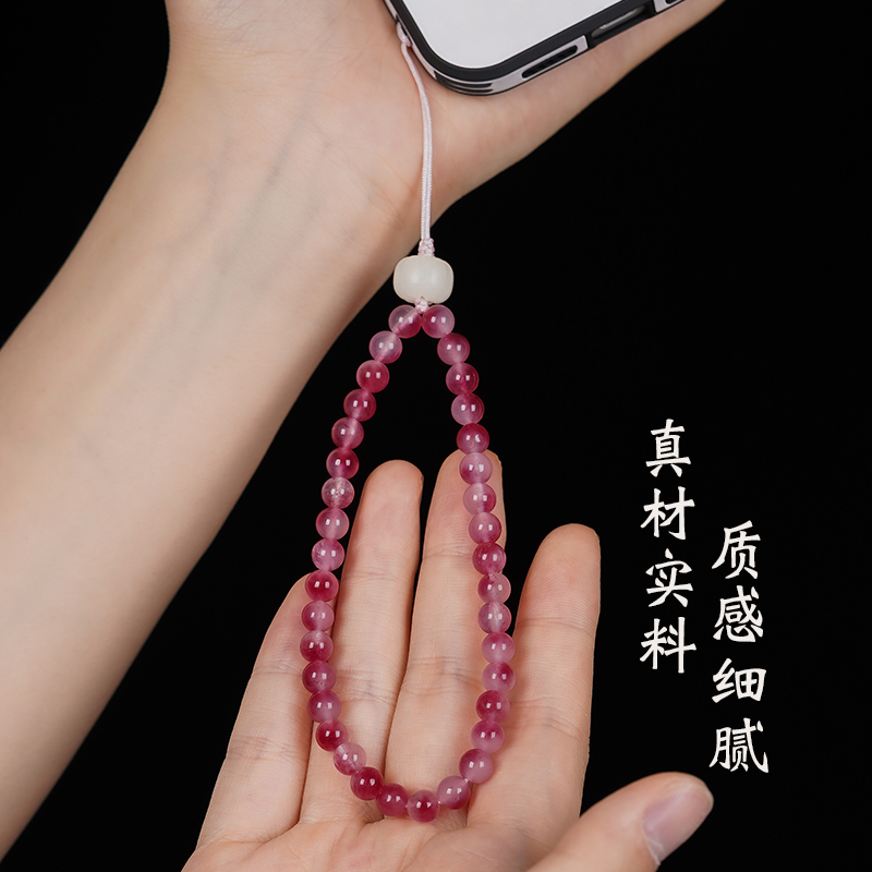 飘花粉玉髓手机链新中式设计菩提南瓜珠手机挂绳精致简约防丢挂饰