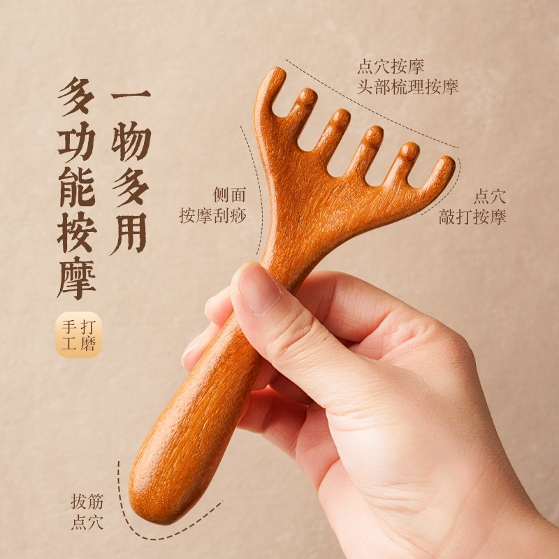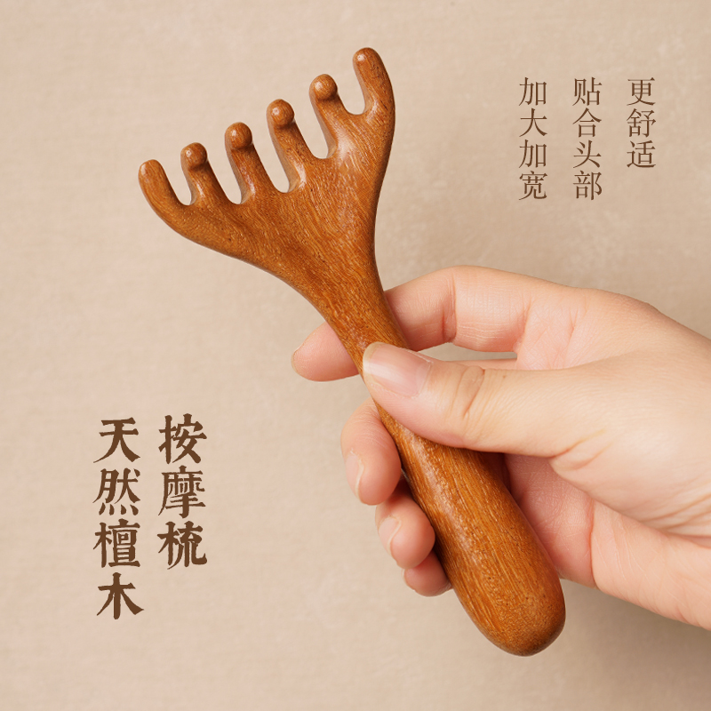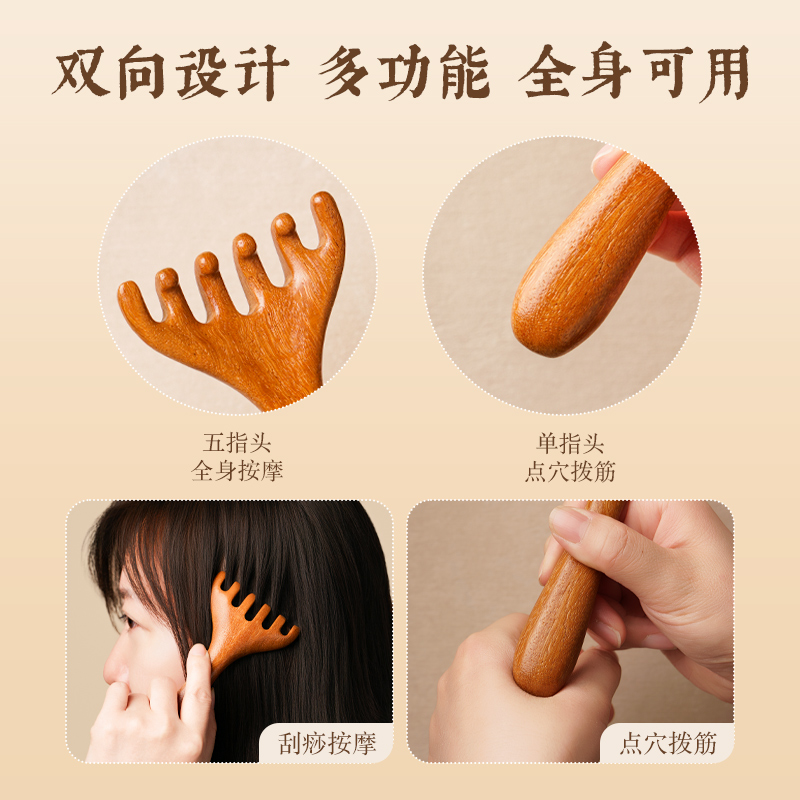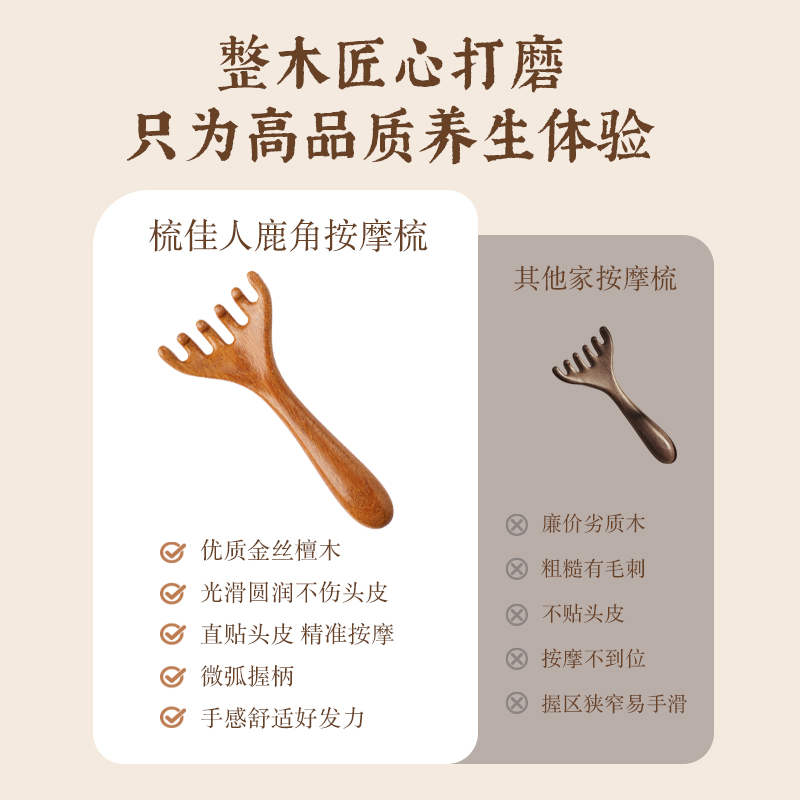 六爪鹿角梳按摩梳眼头部头皮经络檀木梳头疗刮痧疏通神器工具头疗