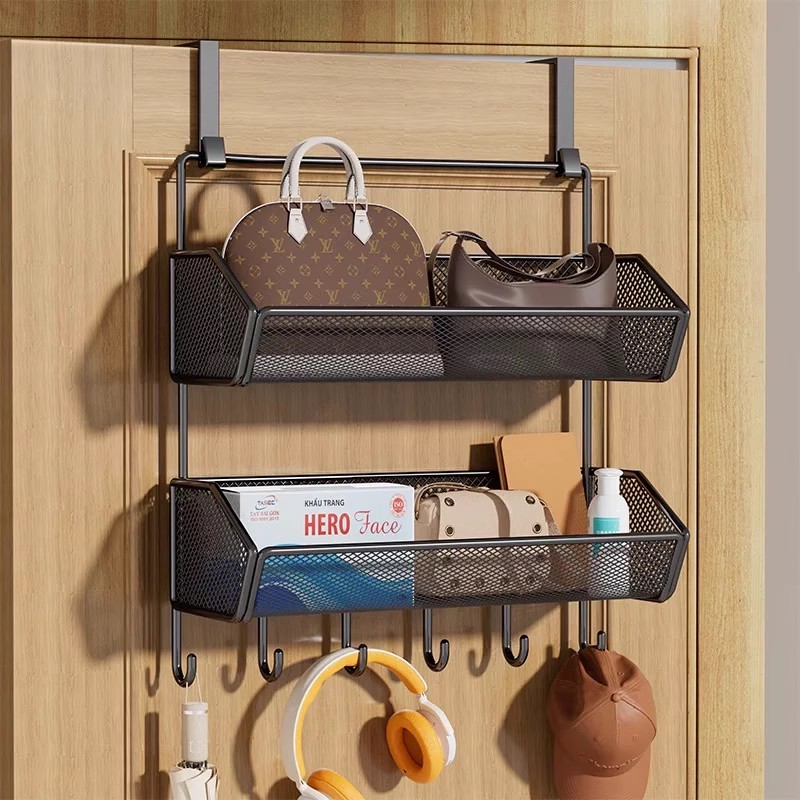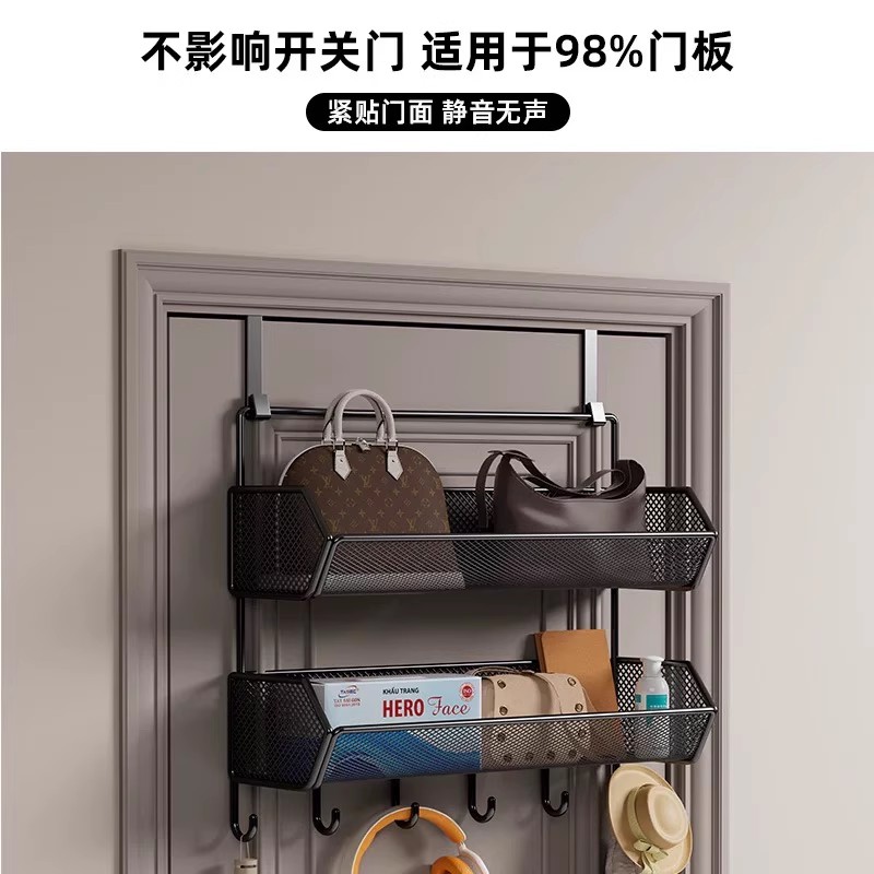 门后挂钩置物架免打孔门上放包收纳架多层储物架承重粘贴强力