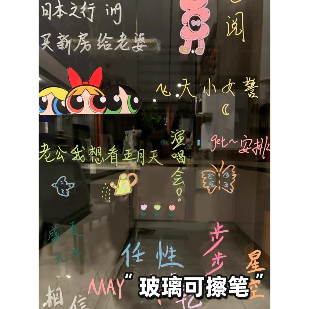 玻璃可擦笔速干丙烯马克笔软头KT板黑板镜面写在玻璃上的笔亚克力涂鸦珐琅板水彩画笔光滑蜡笔液体粉笔写字笔