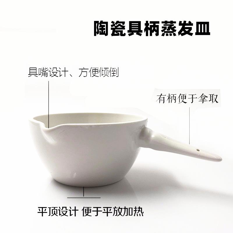 陶瓷柄皿 平底蒸发皿 带把燃烧皿100 150 200 250 300 500ml包邮