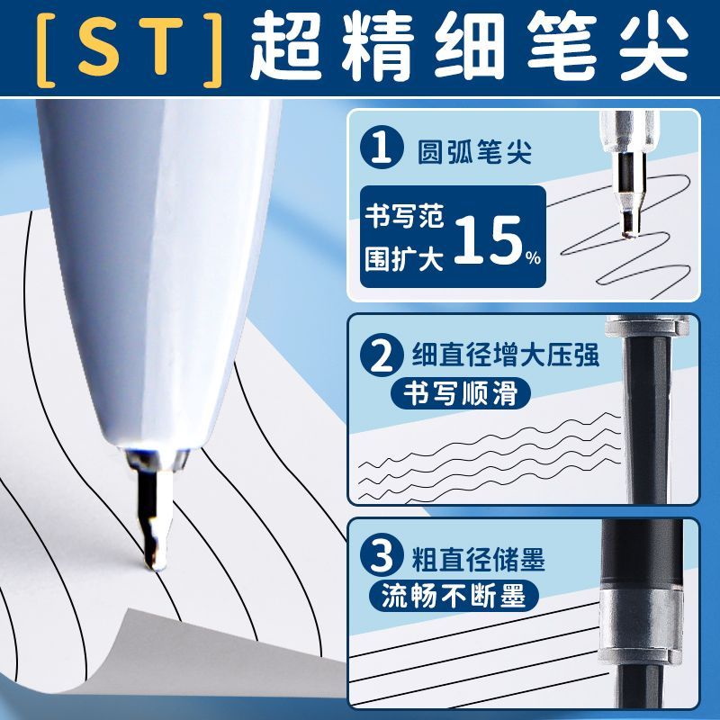 ST刷题笔高颜值按动中性笔圆珠笔黑色水笔小学生专用考试0.5速干碳素笔水性黑笔按压式做笔记签字笔非按斤卖