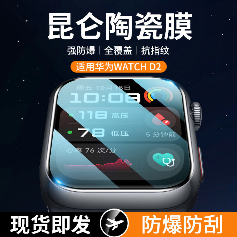 适用华为watchD2手表保护膜华为watch d2贴膜全屏覆盖手表保护膜华为智能手表血压记录仪钢化水凝膜曲面陶瓷