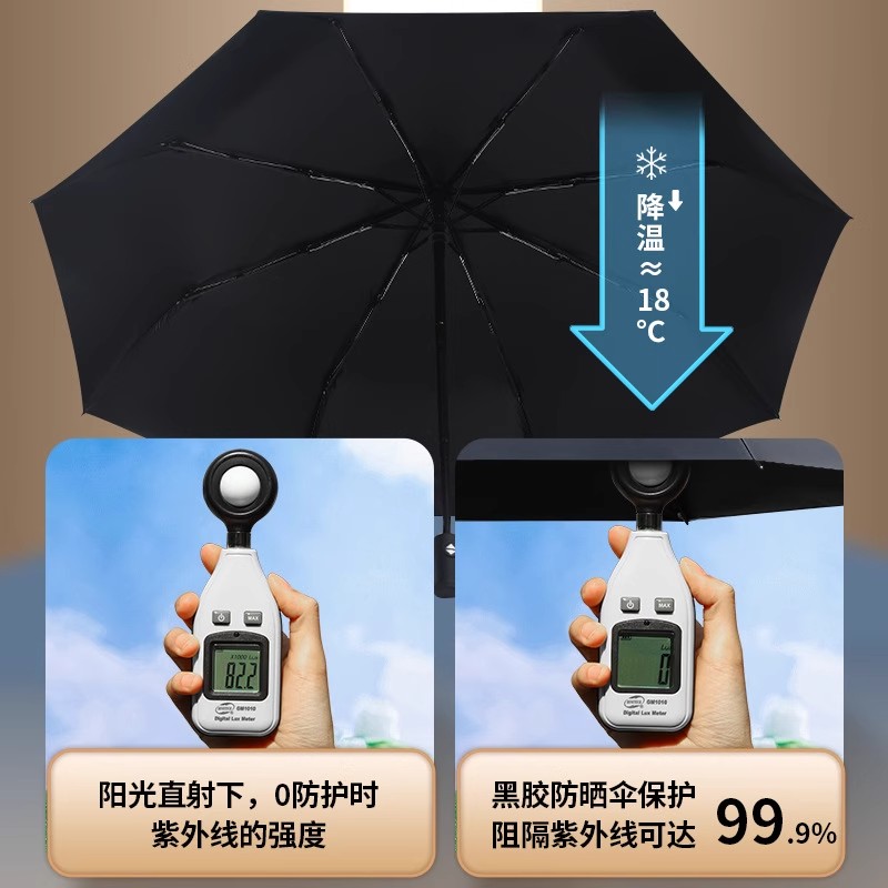 全自动三折自开收黑胶防晒雨伞全自动加大双人伞防风折叠三折伞