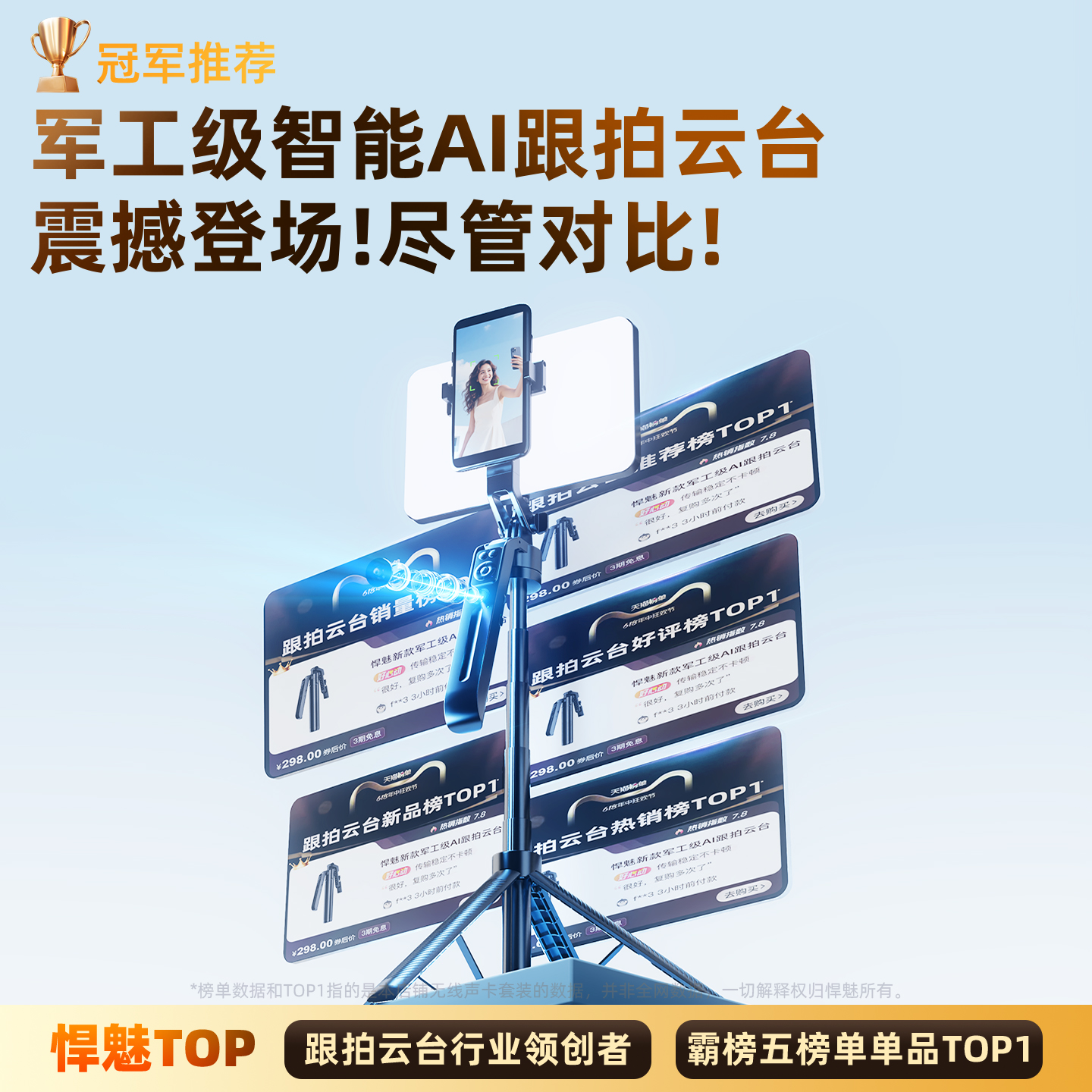智能跟拍云台自拍杆360度旋转手机自拍演唱会拍摄神器新款通用自动人脸追踪直播支架专用旅游便携落地三脚架