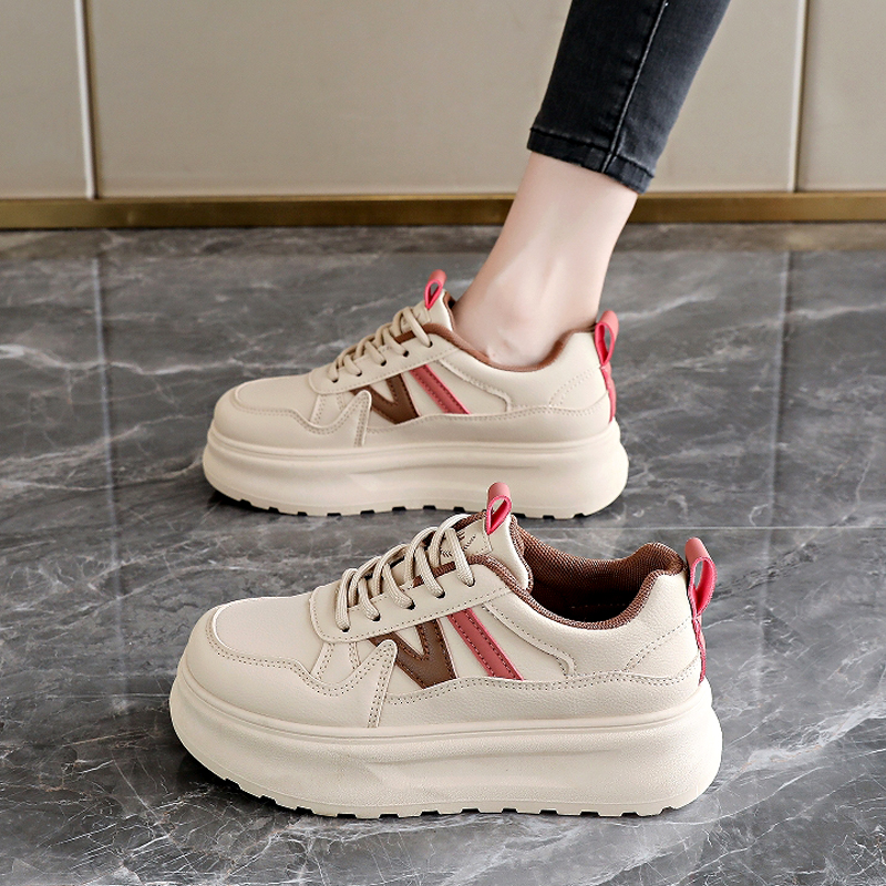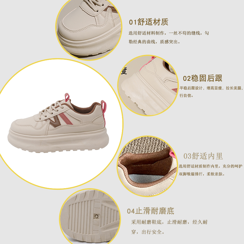 骆驼女鞋2025春夏季新款透气杏色爆款厚底增高老爹鞋休闲运动鞋女