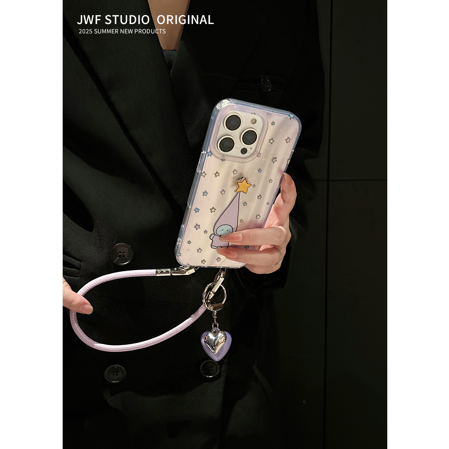 韩系ins镭射长帽大象适用苹果16promax斜挎手机壳趣味旋转星星iphone15保护套14可背挂绳13新款15pro女软网红