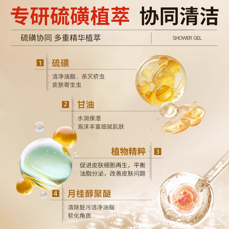 硫磺除螨沐浴露皮肤瘙痒后背祛痘去除螨虫男女士正品官方旗舰店
