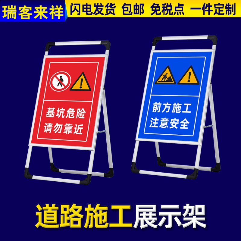 前方道路施工手提展示架警示牌建筑施工告示牌施工区域闲人免进注意安全告知牌工地安全标识牌展示架