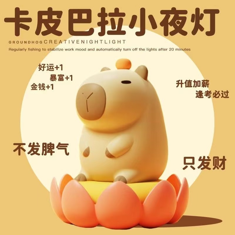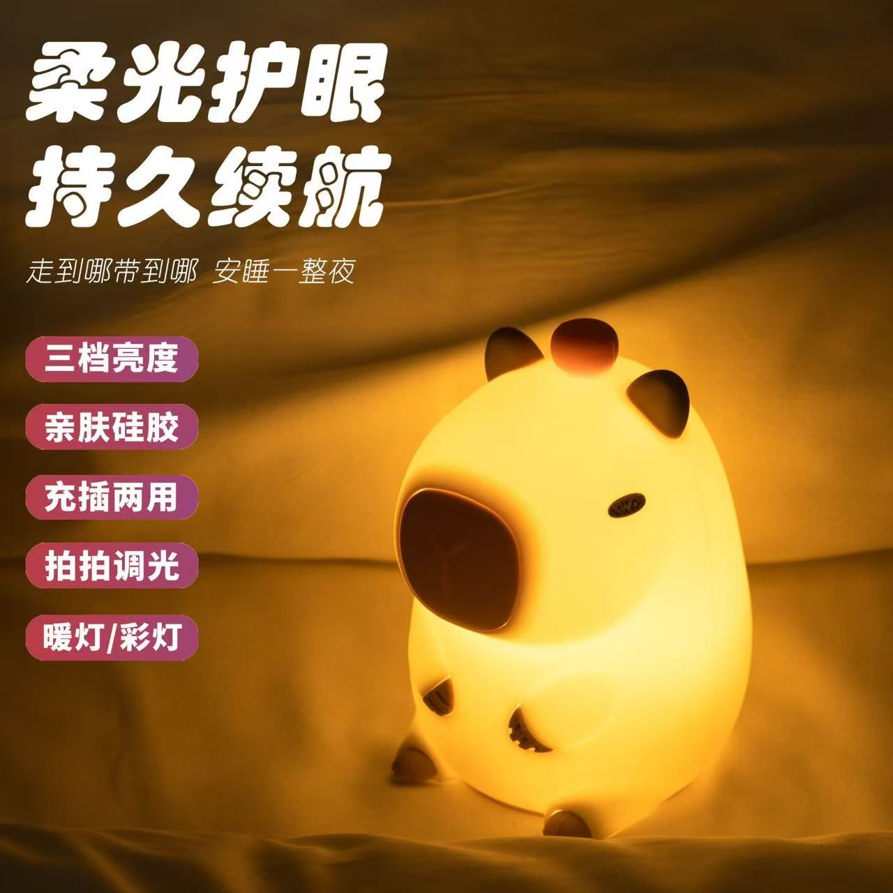 卡皮巴拉硅胶小夜灯拍拍灯送礼物暖光儿童卧室可爱摆件氛围灯感应