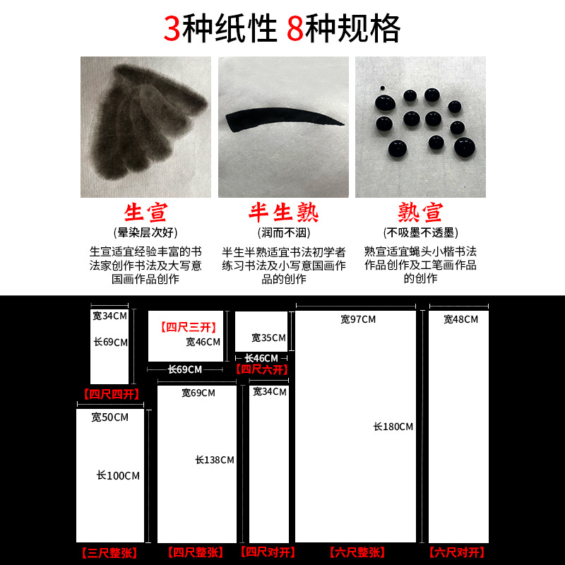 曹楠宣纸书法纸练习纸国画生宣纸半生半熟学生初学者三尺四尺