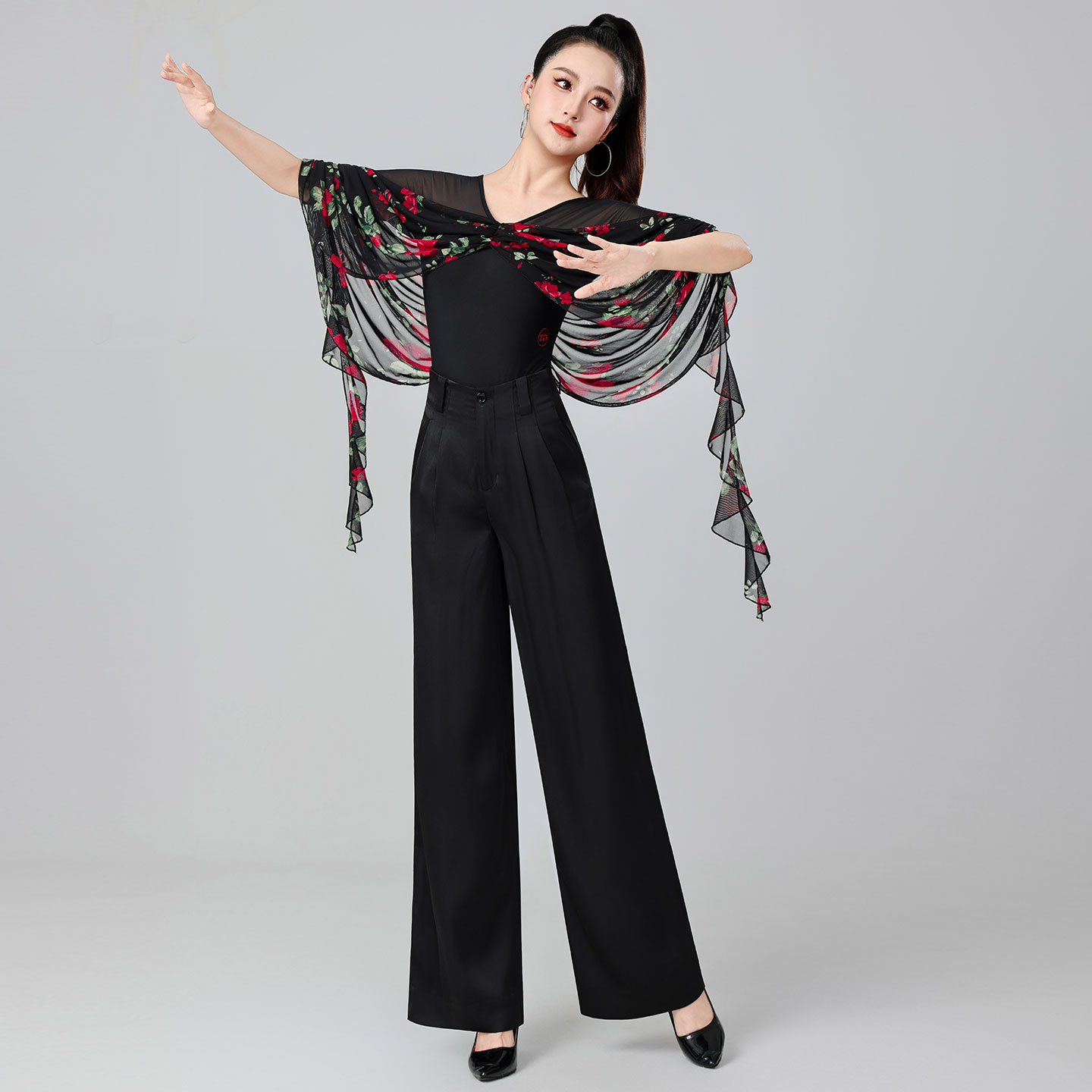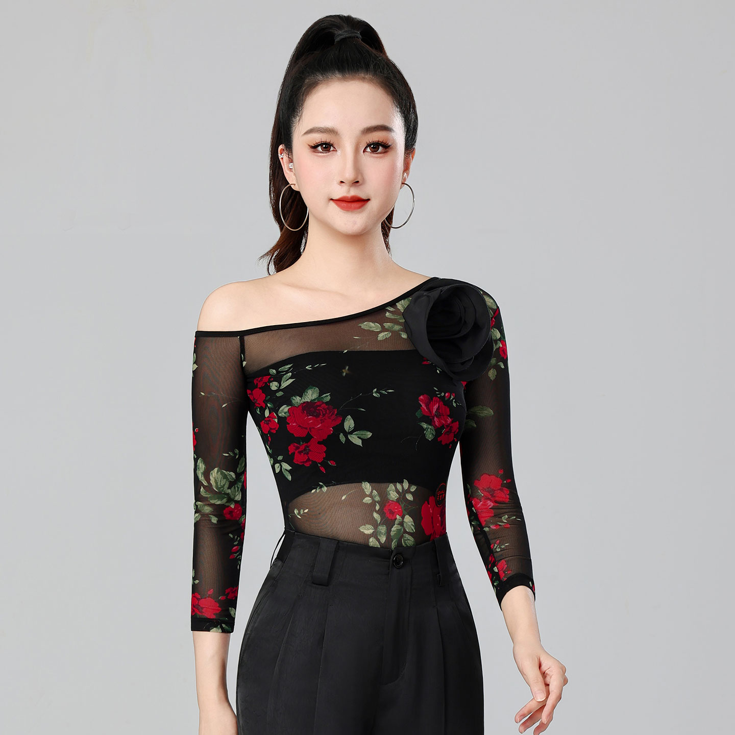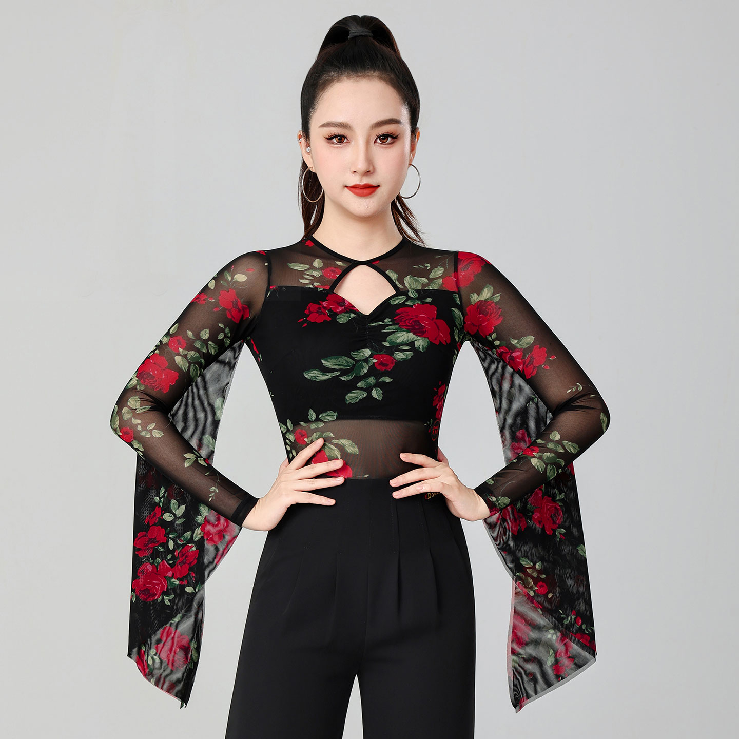 【优雅玫瑰系列】丹宝罗2025新款摩登舞上衣网纱交谊舞舞蹈服练功