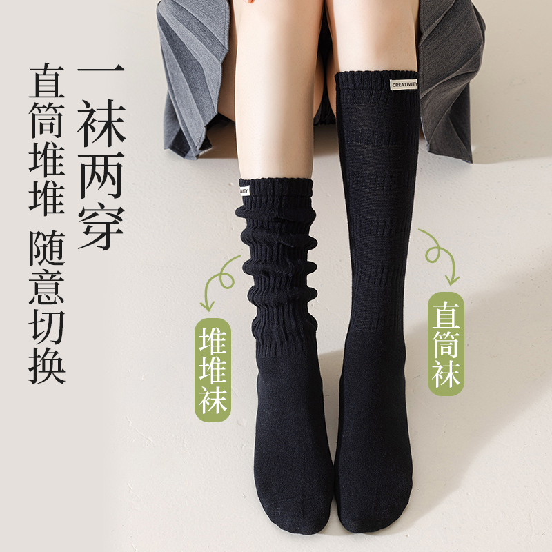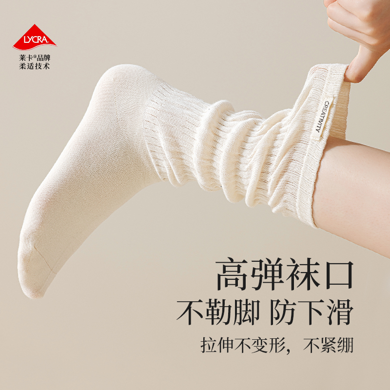 纯色日系小腿袜女款夏季白色长筒网红款春秋款堆堆袜子中筒不勒脚