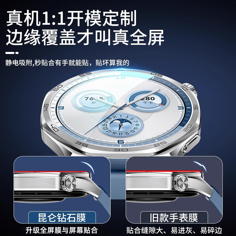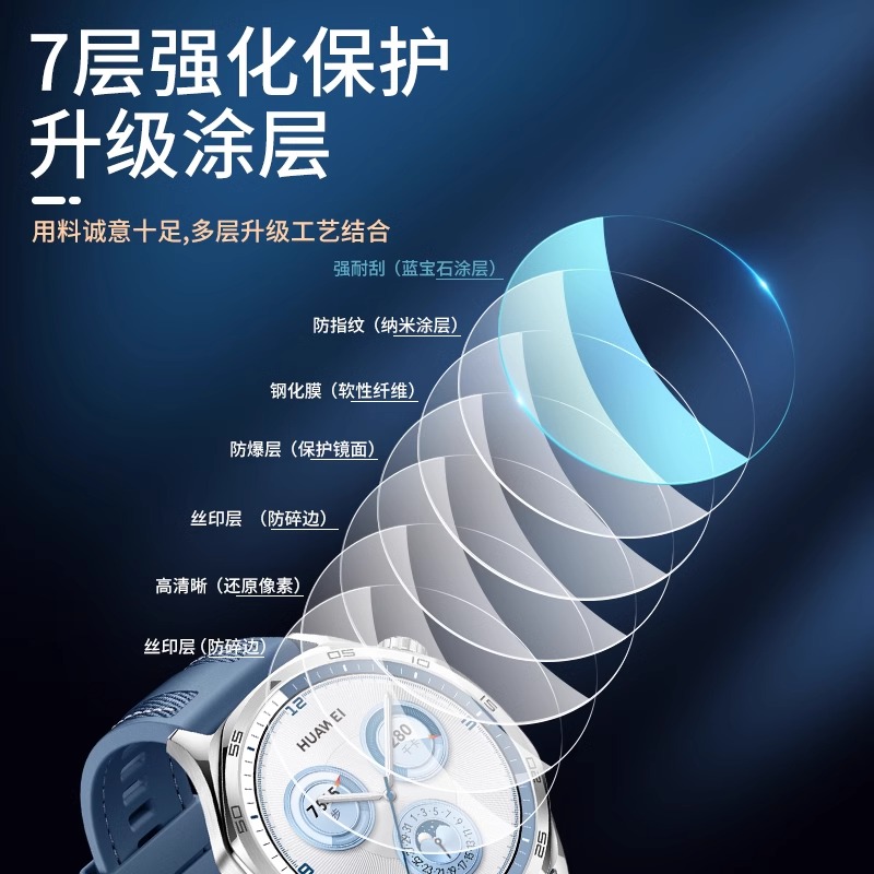 适用华为GT5秒贴手表膜GT4钢化保护膜GT3Pro新款watchGT2表膜41/46mm表盘42水凝Gtrunner表带watch陶瓷48贴膜