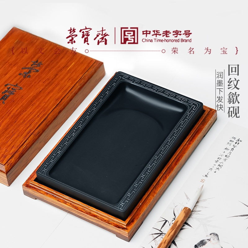 荣宝斋歙砚新坑砚台书法练习磨墨原石砚台初学者用墨池墨盒文房四宝书法国画工笔墨锭专用砚台带木盒
