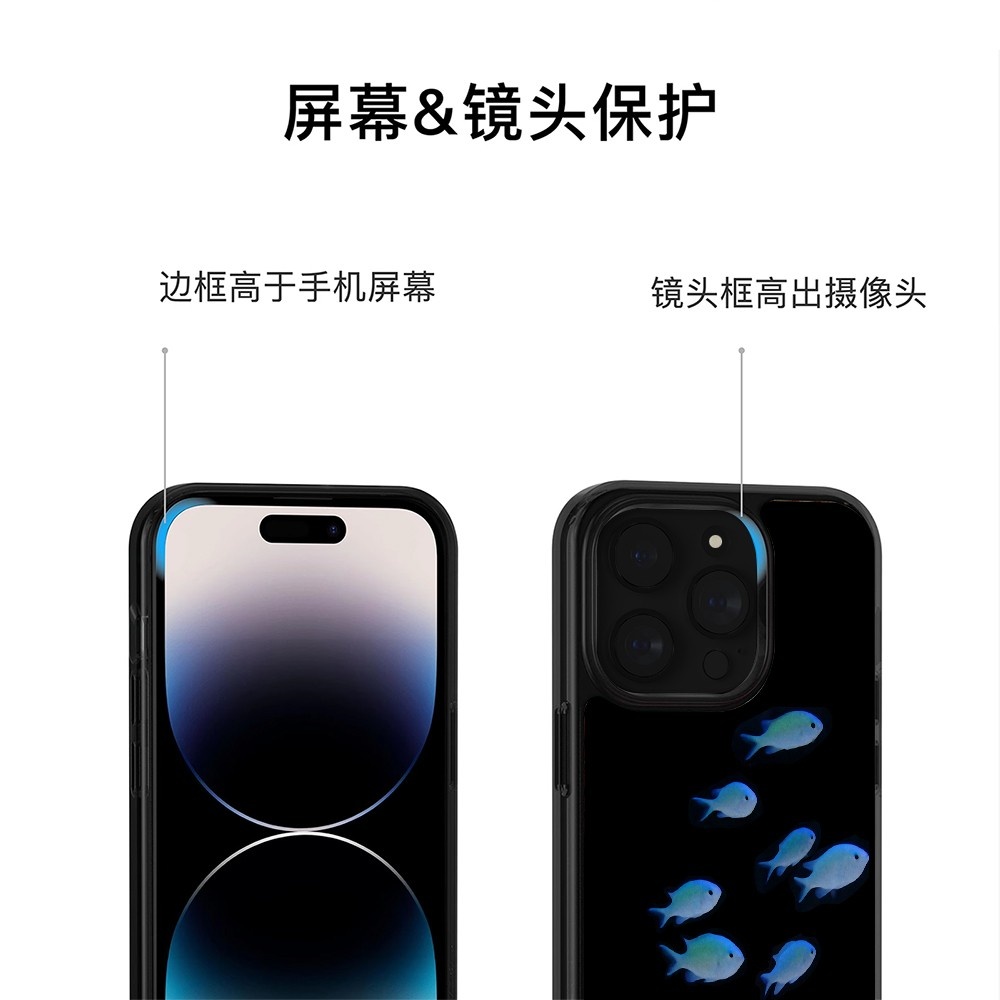 ins复古可爱小鱼群黑边软壳磁吸适用苹果iPhone17promax手机壳1615pro小米1415Pro华为mate60p70三星S23防摔