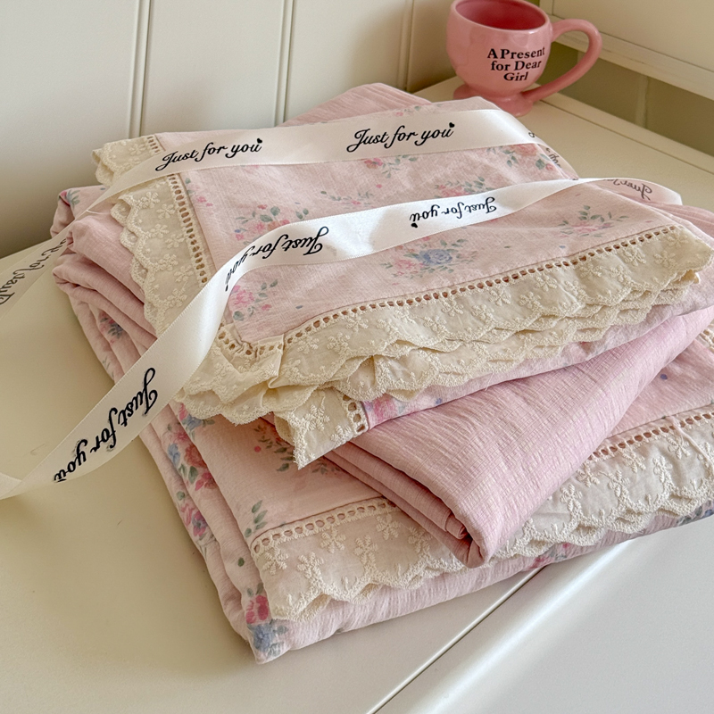 A类双层纱床上四件套纯棉全棉新款田园床单件被套被罩宿舍三件套4