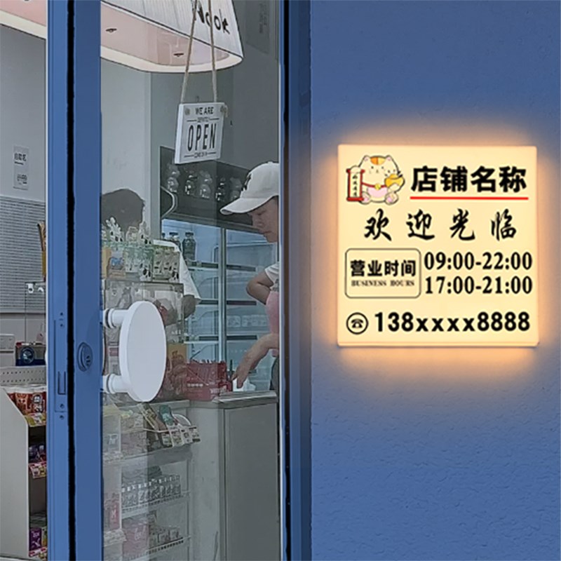 营业中店铺装饰挂牌定制有事外出网红广告牌发光灯牌门口灯箱定制