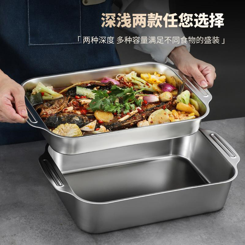 316不锈钢长方形烤鱼盘家用加厚鱼盘专用烤盘加深托盘餐盘方盘