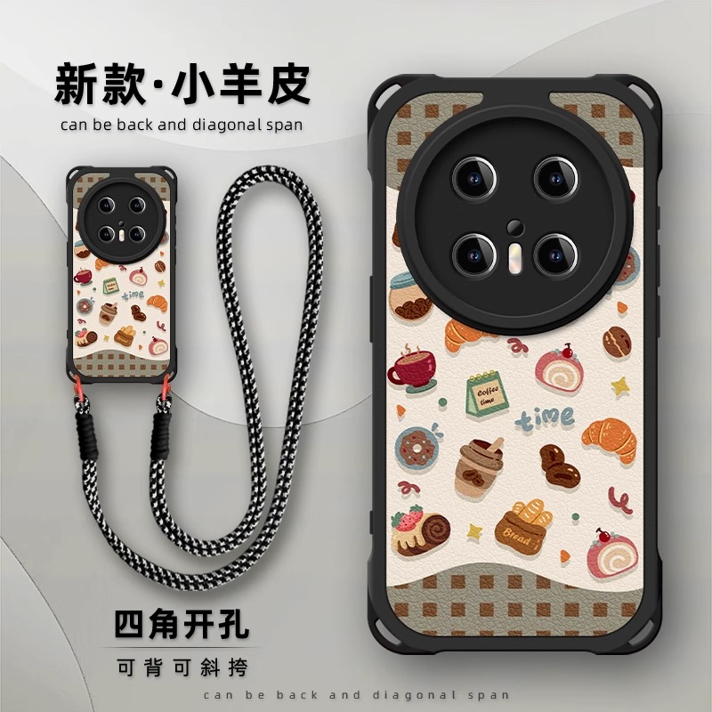 方块食物适用华为Mate70Pro手机壳手绳小羊皮挂绳新款60男女全包50高级感情侣简约40小众不会撞壳创意卡通