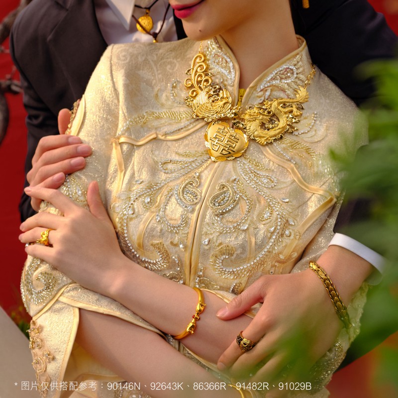 周生生生生有囍婚嫁黄金项链足金龙凤项链结婚嫁妆90146N