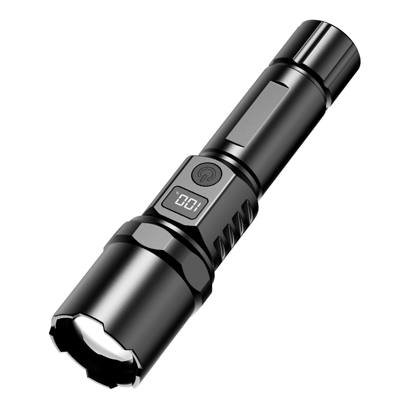 新款强光手电筒可充电带数显超亮户外照明远射长续航便携伸缩变焦