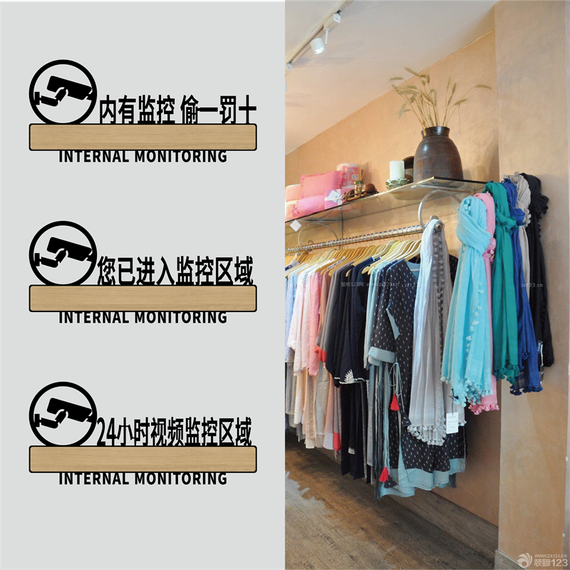 商场商店服装店监控提示牌亚克力您已进入监控区域提醒牌内有监控贴纸偷一罚十警示牌标识牌温馨提示牌墙贴