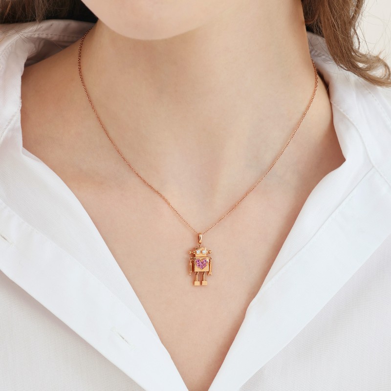 周生生爱情密语粉蓝宝石机器人心形项链K金套链92177U
