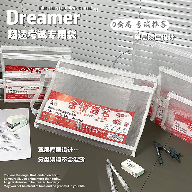 A4 A5考试透明文件袋专用中考高考网纱准考证笔袋收纳袋学生专用