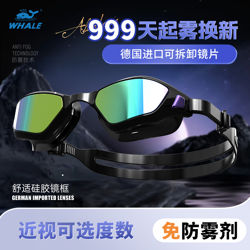 鲸鱼长效防雾泳镜轻量镜片电镀平光防水装备高清硅胶不同透明